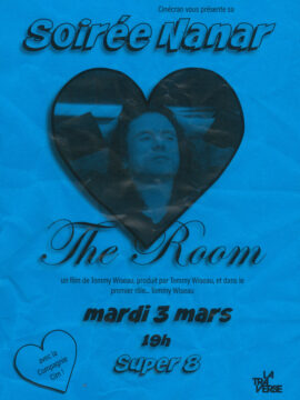 « C’est quoi au juste un « nanar » ? C’est ni plus ni moins qu’un film fait avec beaucoup d’amour et de sincérité, mais avec… disons… des talents relatifs. C’est le royaume des acteurs convaincus mais peu convaincants, des doublages qui en rajoutent une couche, des effets spéciaux très spéciaux, des décors en carton-pâte, des cascades foireuses, des anachronismes et des coupes à la Travolta sur des costumes d’époque. Bref, c’est tellement raté que ça en devient génial ! Pour fêter l’approche de la Saint-Valentin, on s’attaque à l’Everest du genre, le Saint-Graal du désastre : The Room. Le projet fou d’un seul homme au mystère total : Tommy Wiseau. Un film scénarisé par Tommy, produit par Tommy, réalisé par Tommy, avec dans le premier rôle… Tommy Wiseau. Vous êtes prêt·e pour des dialogues lunaires et un jeu d’acteur venu d’une autre galaxie ? Oubliez le bon goût à l’entrée, ramenez votre second degré et venez hurler de rire devant le « meilleur » pire film de l’histoire ! »