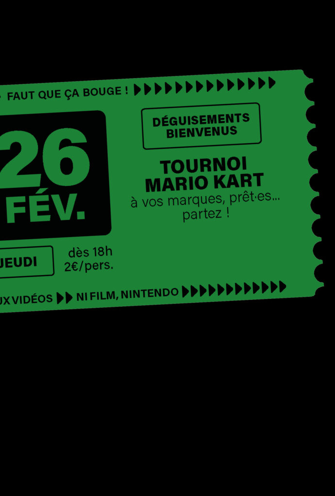 À vos marques, prêt·es, partez ! Cinécran et l’équipe du bar de La Traverse vous proposent de venir avec vos carapaces bleues et bananes jaunes pour faire la course sur l’écran géant du Super 8 ! Et c’est gratuit si tu viens déguisé·e dans le thème !